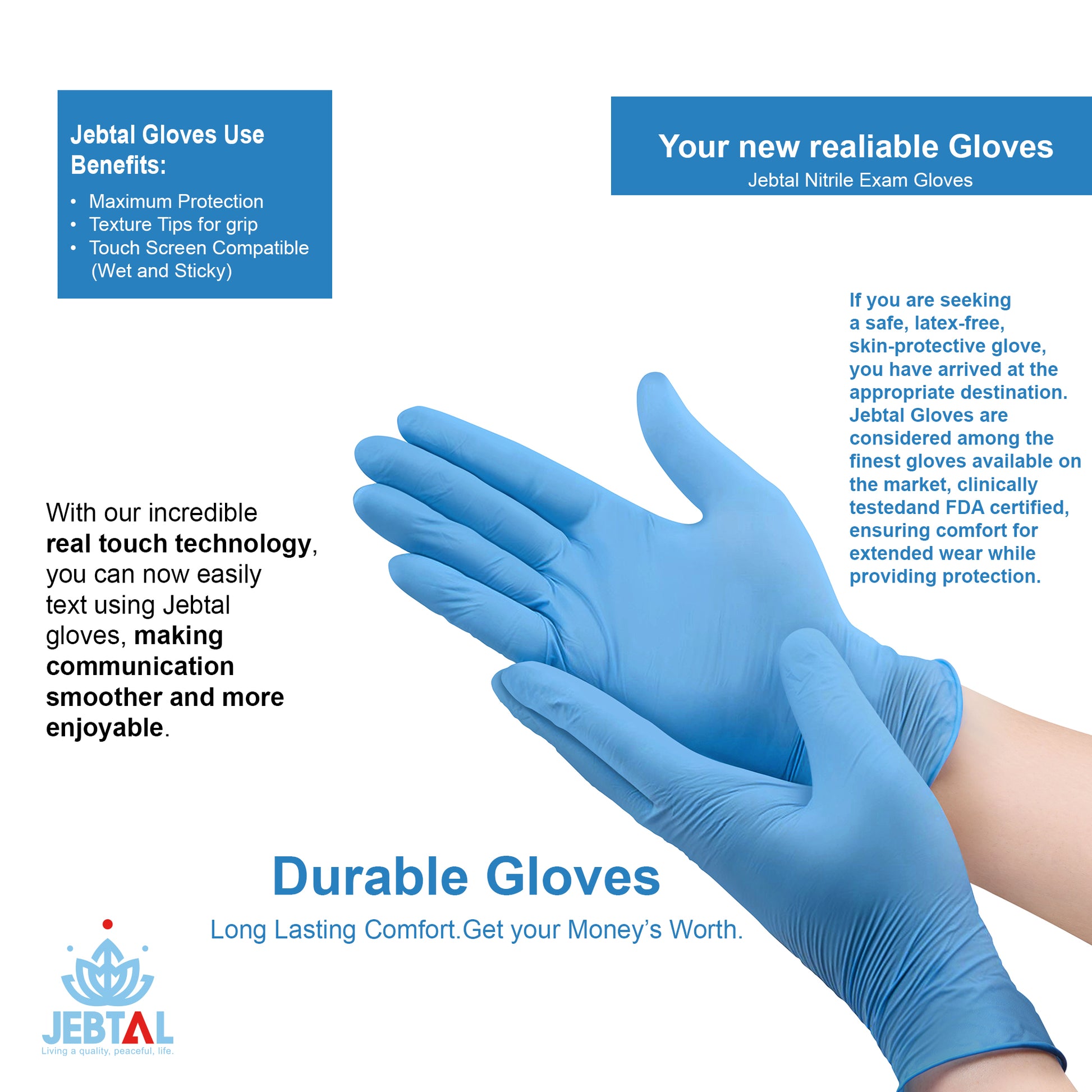 The Jebtal Food Grade Powder-Free Glove JEBTAL nitrile food grade gloves are intended to be worn on the hands of everyone who wants high level protection while handling food.